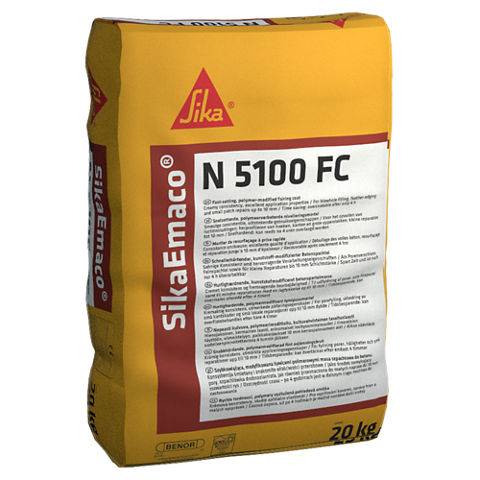 SikaEmaco® N 5100 FC er en en-komponent, polymermodifisert, hurtigherdende fintrekksmørtel for etterbehandling av reparasjonsarbeider. Den oppfyller
